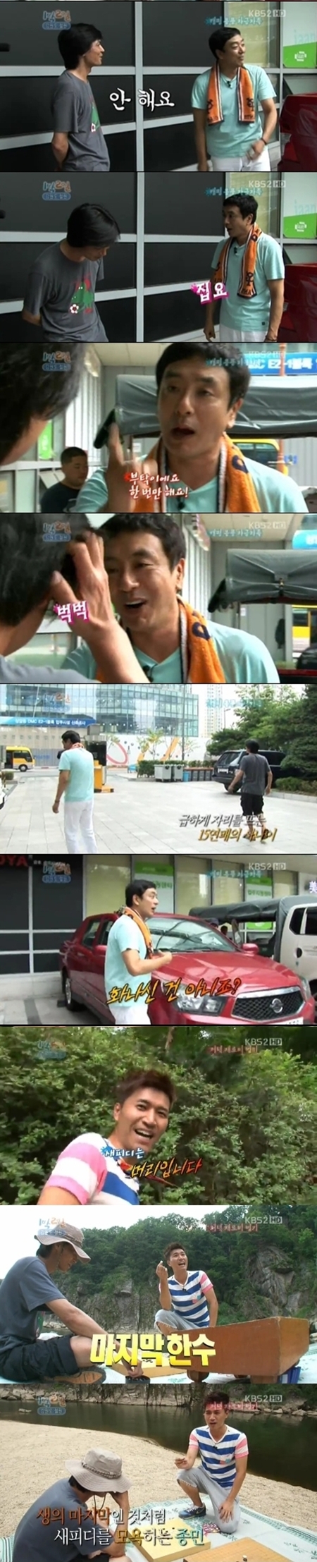 ここで末ではない. お昼食事のためにレストハウスに立ち寄った所帯持ちの男チームメンバーたちがもう一度催嶺型 PDを冷やかし始めたのだ. キム・スンウとチャ・テヒョンは "バナナ食べるようにデ−ビデ−ビディブ一版しましょう"と提案した. 荒てたように逃げる催嶺型 PDを追い回しながら苦しめた. 結局催嶺型 PDはまたチャ・テヒョンと 'デ−ビデ−ビディブ' ゲームをしたし今度やっぱり "デ−ビデ−ビ"で終わるどもることに敗れてしまった. あってばかりする PD キャラクターが誕生したのだ.