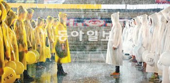 寂寞が流れた. 雨が土砂降り降り注いで 250人の殺伐な目つきだけが行き交った. 先月 30日ソウル中区奨忠洞国立劇場前庭で撮影された雨の中の乱闘劇現場だ.