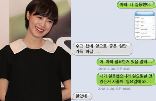 ク・ヘソンは 2日自分のツイッターに “夜明けにお父さんと取り交わした文字をまた読んで見てとても面白くて公開して見ます”と言いながら “娘が学校で仕事などしたと言うのに南仕事のようにおっしゃるうちの父”と言う(のは)文とともに文字内容をキャプチャして公開した.