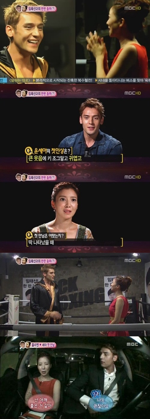 ユンセアズルリエンガングは初盤からたまに呼捨てにする姿まで見えた. お互いに対する第一印象を通すことなしに言ったしズルリエンガングは最初出会いから相議脱衣をして筋肉を誇示した. これを見たユンセアは障りなくて率直な話術と冗談で自分の感情を隠さなかった. これを本のゾグォンは "もう数ヶ月は暮した夫婦みたいだ"と言って驚きを隠すことができなかった.