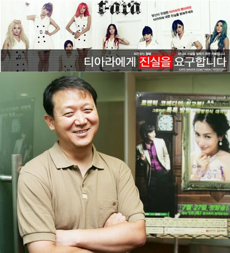 ‘ティジンです’とコアコンテンツメディア両側は去る 7月30日キム・カンス代表がファヤングを条件なしに契約解約すると発表しながら対立した. 当時コアコンテンツメディア側はティアラ私の一人ぼっち説・不和説などは事実無根でファヤングとの契約日の暮れるその間彼の突き出行動たちのためだったと明らかにした. 以後多いネチズンとティアラファンは多様な疑惑を申し立ててインターネットカフェ ‘ティジンです’で団結した. このカフェ会員数は現在 34万名余に至る.