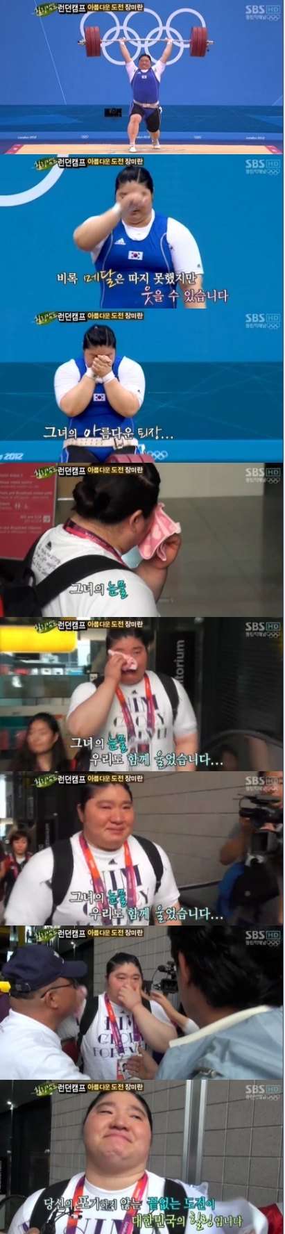 8月 12日放送された SBS 'ロンドンキャンプ'でチャン・ミラン選手が美しい涙を流した.