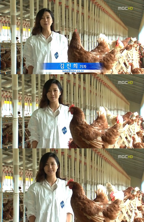 公開された写真は 18日 MBC 'ニュースデスク' 放送の中でギムジンフィ記者が福祉農場遺精卵を紹介する姿をキャプチャしたのだ. 写真の中ギムジンフィ記者はウエーブ頭スタイルと明らかな目鼻立ちで芸能人劣らない初初しい美貌を精一杯威張っている.