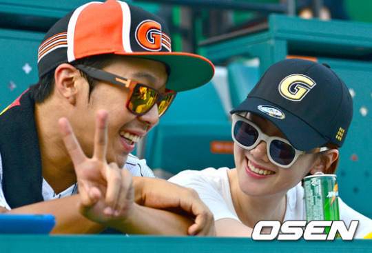 予備夫婦ハハと星は去る 18日午後釜山辞職球場で開かれた '2012 腕度プロ野球' ロッテジャイアンツとネックセンヒアローズの競技(景気)を一緒に観覧した.