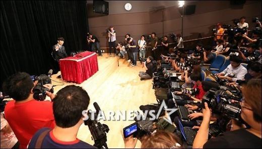 この日黒い色スーツを着飾った下する照れくさいほほ笑みとともに記者会見場に入場して "皆さんのサングコメングイが結婚します"と言いながら "雨もたくさん降って光復節なのにこんなに来てくれて感謝する"と明らかにした.