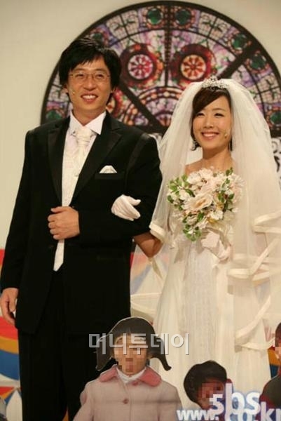 写真には歌手別科コメディアンユ・ジェソクが新郎新婦で変身した過去姿が盛られている.