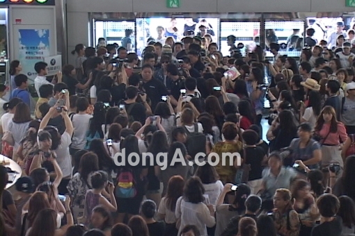 引き続き歌手BoA, ゴルグル−ムFX, スーパージュニア強じんが出国場に続々と現われた. これらの登場に約 5百名余のファンは大きい歓呼の声を打った. 空港出国場は幾多のファンによって業務がまひするほどに押すな押すな状況を成した.